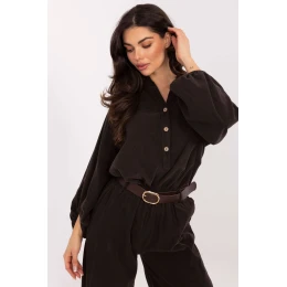 Štýlová košeľová blúzka v ležérnom dizajne, ktorá je ideálna na každý deň. Je vyrobená z ľahkého a príjemného polyesteru a poskytuje pohodlie počas celého dňa. Model má dlhé nadýchané rukávy, ktoré mu dodávajú jemnú ľahkosť a ženský charakter. Výstrih v tvare srdca s decentným stojačikom krásne zvýrazňuje krk a zapínanie na gombíky v strednej dĺžke uľahčuje obliekanie a dodáva celému kúsku elegantný vzhľad. Blúzka v hladkej, jednotnej farbe a štandardnej dĺžke sa hodí k džínsom aj sukniam a vytvára každodenný módny vzhľad.