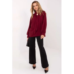 Elegantní dámská blůza standardní délky vyrobena z vysoce kvalitní viskózy, která poskytuje pohodlí a krásně padne na postavu. Hladký materiál zdůrazňuje klasický, elegantní charakter modelu, díky čemuž se blůza skvěle hodí na každodenní nošení, do práce, ale i na společenské události. Model vyniká dlouhým, lehce objemným rukávem, který dodává celku jemnou ženskost a efektní vzhled. Na výstřihu je elegantní šněrování, které umožňuje regulovat styl zakončení od volnějšího po více upravený. Dalším ozdobným prvkem je stylová brož, zdůrazňující výjimečný charakter blůzy. Model nemá zapínání, co zvyšuje pohodlí a dodává mu hladký a lehký tvar. Ideální volba pro ženy, které oceňují eleganci v každodenních a pracovních stylizacích.
