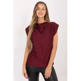 Elegantní dámská blůza je efektní nabídkou pro návštěvy a události, kde je důležitý styl a výjimečný charakter stylizace. Vyrobena z kombinace polyesteru a elastanu poskytuje jemnou pružnost, hladké uspořádání materiálu a pohodlí po celý den. Model se standardní délkou a bez rukávů byl obohacen o polštářky na ramenech, které krásně zdůrazňují linii siluety, přidávají jí strukturu a eleganci. Subtilní lehoučký výstřih dodává blůze ženský, smyslný výraz. Celou plochu materiálu zdobí aplikace z flitrů, díky čemuž blůza efektně září a přitahuje pohled. Bez zapínání je model pohodlný a snadno se obléká. Stylová, výjimečná a ideální na speciální události se skvěle hodí k elegantním kalhotám nebo sukní.
