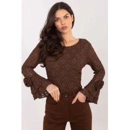 Elegantní krajková halenka je stylovým návrhem, který se skvěle hodí jak na výjimečné události, tak do každodenních outfitů. Vyrobená z materiálu vysoce kvalitního polyesteru s elastanem, poskytuje pohodlí nošení a dobře padne k postavě. Různorodá struktura materiálu dodává halence jedinečný charakter a jemnou eleganci. Model s krátkou délkou, kulatým výstřihem a bez zapínání působí lehce a moderně. Dlouhé zvonové rukávy jsou zdobeny efektními volány a ozdobným materiálovým květem, které přitahují pozornost a dodávají celku romantický nádech. Přední část halenky má podšívku, zatímco rukávy a záda zůstávají jemně průhledné, zdůrazňujíce krajkový charakter modelu. Další stahování po stranách halenky jemně modeluje postavu. Halenka se skvěle hodí jako součást stylového outfitu na návštěvu, večírek, do práce i do každodenního života, v kombinaci s kalhotami s vysokým pasem, sukní nebo elegantními džínami.