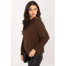 Elegantná blúzka s jemným ženským štýlom, ideálna na slávnostné príležitosti a do práce. Je vyrobená z hladkej tkaniny z polyesteru a elastanu, ktorá poskytuje pohodlie a jemne sa prispôsobí postave. Blúzka má okrúhly výstrih a je vybavená efektnými dlhými rukávmi, ktoré jej dodávajú eleganciu. Balónové rukávy s ozdobnými záhybmi na ramenách a jemné gombíky dodávajú celku osobitý charakter. Vďaka štandardnej dĺžke je blúzka skvelým doplnkom k sukniam aj nohaviciam, čím vytvára elegantný styling.