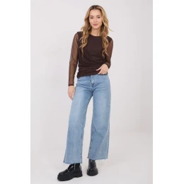 Táto elegantná blúzka je vyrobená z jemnej sieťoviny s priliehavým strihom, ktorý jemne zvýrazňuje postavu a dodáva oblečeniu rafinovaný charakter. Je vyrobená z kombinácie polyesteru a elastanu, čo zabezpečuje pohodlie pri nosení a pružnosť materiálu. Model s jednoduchým vzorom má klasický okrúhly výstrih a dlhé rukávy, ktoré zostávajú bez podšívky, čo vytvára ľahký a zmyselný efekt. Blúzka je na tele podšitá, čo zabezpečuje pohodlie a estetické zakončenie. Ozdobné volániky dodávajú celku eleganciu a jemne modelujú postavu. Štandardná dĺžka zaručuje, že blúzka je ideálna do práce, na spoločenský styling, ako aj na elegantné vychádzky alebo podujatia.
