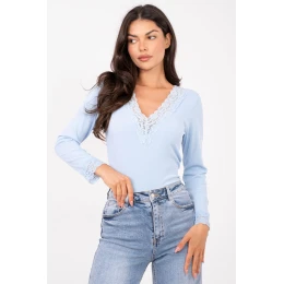 Přizpůsobený každodenní top je ideální volbou pro ženy, které ocení pohodlí spojené s jemnou elegancí. Model v casual stylu se skvěle hodí jak na každodenní nošení, tak do práce, vytvářejíc estetické a ženské outfity. Hladký vzor a proužkovaná struktura materiálu dodává topu moderní a zároveň univerzální charakter. Top je vyroben z elastické a příjemné směsi polyesteru a elastanu, co zajišťuje pohodlí a dobře padnoucí střih. Standardní délka je ideální pro kombinaci s různými druhy kalhot a sukní. Stylovým akcentem jsou dlouhé rukávy zakončené jemnou krajkou a výstřih v srdcovém tvaru lemovaný krajkou, co dodává celku ženský šarm a lehkost. Bez zapínání zdůrazňuje jednoduchost střihu a pohodlí nošení. Jedná se o top, který spojuje každodenní pohodlí s elegantními detaily, ideální pro různé outfitové kombinace.