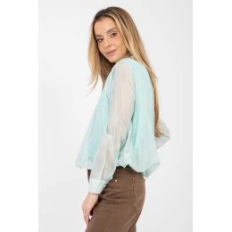 Táto elegantná dámska blúzka je skvelou voľbou na bežné nosenie, do práce aj na formálne príležitosti. Je vyrobená z kvalitného materiálu kombinujúceho tencel a polyester, ktorý poskytuje pohodlie, priedušnosť a estetický vzhľad počas celého dňa. Model so štandardnou dĺžkou, dlhými rukávmi a klasickým golierom pôsobí mimoriadne štýlovo a nadčasovo. Blúzka nemá zapínanie, čo jej dodáva minimalistický charakter a uľahčuje obliekanie. Hladký vzor podčiarkuje eleganciu strihu a ozdobné gombíky sú decentným, dekoratívnym doplnkom. Ďalšou výhodou je podšívka v strednej časti, ktorá zvyšuje pohodlie a estetiku nosenia. Ideálna na kombinovanie s elegantnými nohavicami, sukňami alebo sakami.