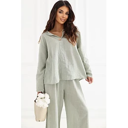 Blúzka je vyrobená z kvalitnej bavlny, ktorá poskytuje pohodlie a priedušnosť počas celého dňa. Hladký vzor robí z blúzky univerzálny kúsok, ktorý možno ľahko kombinovať s mnohými štýlmi, džínsami aj sukňami. Blúzka má výstrih zdobený jemným gombíkom, ktorý jej dodáva jemný ženský charakter. Štandardná dĺžka zaručuje dobre padnúci strih a umožňuje jej nosenie na rôzne spôsoby. Model má dlhé rukávy s možnosťou ohrnutia, vďaka čomu sa blúzka ľahko prispôsobí počasiu a štýlu. Bez zapínania na gombíky sa pohodlne a rýchlo oblieka, čo je ideálne na každodenné príležitosti.