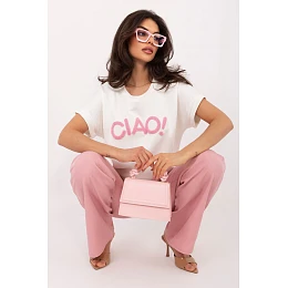 Blúzka na každý deň s univerzálnym charakterom, ktorá sa hodí k mnohým štýlom. Model má na prednej strane kontrastný nápis, ktorý celému kúsku dodáva moderný a uvoľnený štýl. Je vyrobená z príjemnej zmesi viskózy a elastanu, vďaka čomu poskytuje pohodlie a jemne prilieha k postave. Štandardná dĺžka a krátke rukávy z nej robia ideálnu blúzku na teplejšie dni alebo ako podklad pod iné kúsky oblečenia. Má klasický okrúhly výstrih a nie je na nej žiadne zapínanie, čo zdôrazňuje jej pohodlný, ležérny charakter.