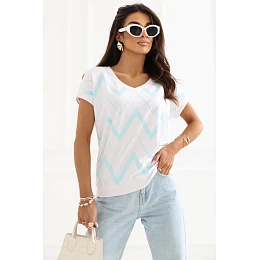 Tento dámsky top na každý deň je pohodlným a štýlovým návrhom na rôzne príležitosti. Je vyrobený z príjemnej zmesi bavlny a elastanu, poskytuje pohodlie, dobrú priedušnosť a ľahkú elasticitu, vďaka ktorej sa prispôsobí postave. Model zdobí geometrický vzor, ktorý mu dodáva moderný a výrazný charakter. Štandardná dĺžka sa hodí ku nohaviciam aj sukniam. Krátke rukávy a lodičkový výstrih jemne zvýrazňujú ženskú siluetu a dodávajú celému outfitu ľahkosť. Konštrukcia bez gombíkov zvyšuje pohodlie pri nosení a uľahčuje obliekanie modelu. Univerzálny top je ideálny na každý deň, výborne sa hodí do práce aj na menej formálne udalosti.