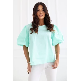 Košile elegantního a univerzálního charakteru je stylovým návrhem ideálním na každodenní nošení, do práce a na více formální příležitosti. Její hladký vzor zdůrazňuje minimalistický, nadčasový design, který lze snadno sladit s různými kousky oblečení. Model s standardní délkou a krátkým nadýchaným rukávem dodává postavě lehkost a decentně zdůrazňuje ženský charakter stylizace. Kulatý výstřih dodává celku klasickou eleganci, a zapínání na jeden knoflík v oblasti krku představuje jemný, estetický detail. Vyrobená z vysoce kvalitní směsi bavlny a elastanu, košile je příjemná na dotek, prodyšná a jemně elastická, což zajišťuje pohodlí po celý den a dobrou shodu s postavou. Jedná se o elegantní a zároveň pohodlný kousek oblečení, který se hodí jak do kancelářských stylizací, tak i do více formálních.