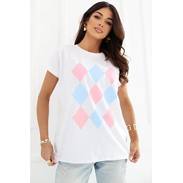 Tento dámsky top na každodenné nosenie má pohodlný a štýlový dizajn na rôzne príležitosti. Je vyrobený z príjemnej zmesi bavlny a elastanu, poskytuje pohodlie pri nosení, dobrú priedušnosť a ľahkú elasticitu, vďaka ktorej sa prispôsobí postave. Model má geometrický vzor, ktorý mu dodáva moderný a výrazný charakter. Vďaka štandardnej dĺžke sa top skvele hodí ku nohaviciam aj sukniam. Krátke rukávy a okrúhly výstrih jemne zvýrazňujú ženskú siluetu a dodávajú celému outfitu ľahkosť. Konštrukcia bez gombíkov zvyšuje pohodlie pri nosení a uľahčuje obliekanie modelu. Ide o univerzálny top ideálny na každý deň, ktorý sa skvele hodí do práce aj na menej formálne vychádzky.