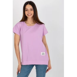 Voľná dámska blúzka s krátkymi rukávmi a okrúhlym výstrihom. Ozdobná nášivka na spodnom leme.