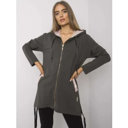 Tmavá khaki mikina na zips s vreckami.