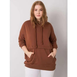 Tmavohnedá plus size mikina s kapucňou a klokankou.