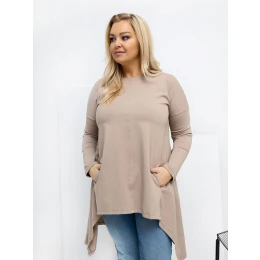 Rozmery blúzky v jednej veľkosti merané na plocho: blúzka: šírka v podpazuší - 59 cm, dĺžka rukáva - 43 cm, celková dĺžka - 75 cm (vpredu), celková dĺžka - 93 cm (vzadu), šírka v spodnej časti - 88 cm.