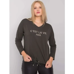 Tmavo khaki dámska plus size blúzka s nápisom.
