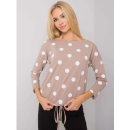 RUE PARIS Tmavobéžová dámska blúzka s hráškom.