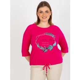 Fuksiová blúzka plus size s nápismi a aplikáciami.