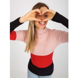 Svetloružová a čierna základná blúzka s rebrovaným rolákom .