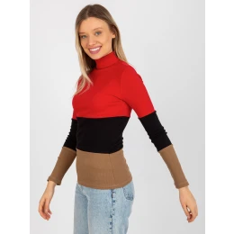 Základná blúzka v červeno-tmavom kamennom odtieni s rebrovaným rolákom .