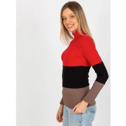 Červeno-hnedá základná blúzka s rebrovaným rolákom .