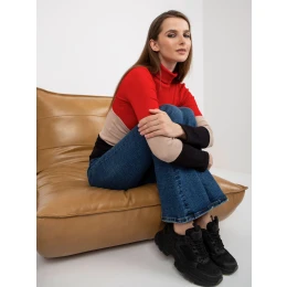 Červeno-čierna rebrovaná blúzka s rolákom .