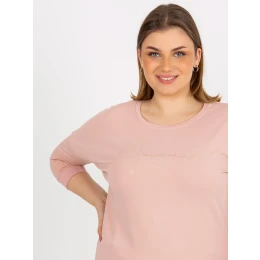 Svetloružová blúzka plus size s potlačou a 3/4 rukávmi .