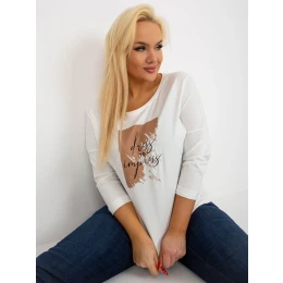 Blúzka plus size v ecru farbe s potlačou a 3/4 rukávmi.
