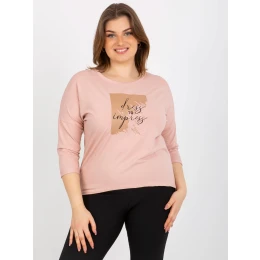Svetloružová blúzka plus size s potlačou a nápismi.