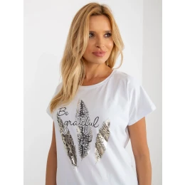 Biela blúzka s lesklou potlačou RUE PARIS .