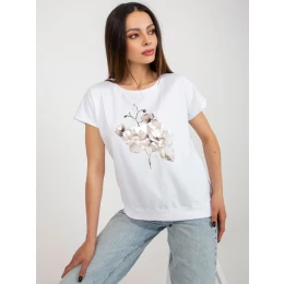 Biela blúzka s potlačou a krátkymi rukávmi značky RUE PARIS.