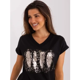Čierna blúzka s potlačou a výstrihom do V značky RUE PARIS .