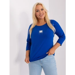 Kobaltová dámska blúzka plus size s 3/4 rukávmi.