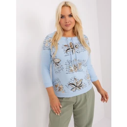 Svetlomodrá dámska blúzka plus size s potlačou.