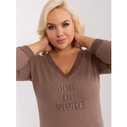 Hnedá bavlnená blúzka plus size s rebrovaným lemom.