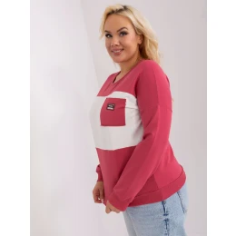 Tmavá korálová a ecru plus size buzzy s dlhými rukávmi.