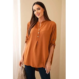 Blúzka s dlhším zadným dielom tmavá ťava