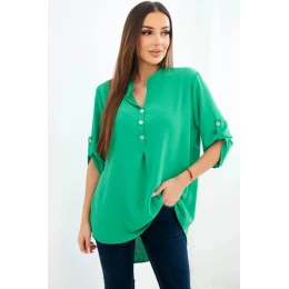 Objevte mimořádnou eleganci a pohodlí v prezentované halence s delšími zády, knoflíkovým výstřihem a ohrnutými rukávy, tato halenka nejen vypadá výjimečně stylově, ale poskytuje také bezkonkurenční funkčnost. Ciťte se sebevědomě a elegantně v halence, která podtrhne váš jedinečný styl. Díky delším zadním dílům vytvoříte jemné a módně nepravidelné proporce a knoflíkový výstřih vám umožní upravit si halenku podle vašich preferencí. Vyhrnuté rukávy dodávají halence lehkost a ležérní charakter, ideální pro různé příležitosti. Ať už se jedná o obchodní jednání nebo relaxační kávu s přáteli, naše halenka vám poskytne pohodlí a styl v jednom. Nenechte si ujít příležitost přidat do svého šatníku tuto jedinečnou halenku! Objevte eleganci, pohodlí a funkčnost v jednom a zdůrazněte svůj jedinečný styl ještě dnes. Velikost je univerzální a bude vhodná pro ženy, které nosí velikost S, M nebo L.