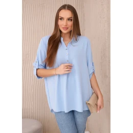 Objevte mimořádnou eleganci a pohodlí v prezentované halence s delšími zády, knoflíkovým výstřihem a ohrnutými rukávy, tato halenka nejen vypadá výjimečně stylově, ale poskytuje také bezkonkurenční funkčnost. Ciťte se sebevědomě a elegantně v halence, která podtrhne váš jedinečný styl. Díky delším zadním dílům vytvoříte jemné a módně nepravidelné proporce a knoflíkový výstřih vám umožní upravit si halenku podle vašich preferencí. Vyhrnuté rukávy dodávají halence lehkost a ležérní charakter, ideální pro různé příležitosti. Ať už se jedná o obchodní jednání nebo relaxační kávu s přáteli, naše halenka vám poskytne pohodlí a styl v jednom. Nenechte si ujít příležitost přidat do svého šatníku tuto jedinečnou halenku! Objevte eleganci, pohodlí a funkčnost v jednom a zdůrazněte svůj jedinečný styl ještě dnes. Velikost je univerzální a bude vhodná pro ženy, které nosí velikost S, M nebo L.