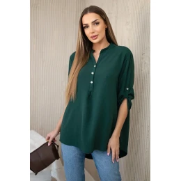 Objevte mimořádnou eleganci a pohodlí v prezentované halence s delšími zády, knoflíkovým výstřihem a ohrnutými rukávy, tato halenka nejen vypadá výjimečně stylově, ale poskytuje také bezkonkurenční funkčnost. Ciťte se sebevědomě a elegantně v halence, která podtrhne váš jedinečný styl. Díky delším zadním dílům vytvoříte jemné a módně nepravidelné proporce a knoflíkový výstřih vám umožní upravit si halenku podle vašich preferencí. Vyhrnuté rukávy dodávají halence lehkost a ležérní charakter, ideální pro různé příležitosti. Ať už se jedná o obchodní jednání nebo relaxační kávu s přáteli, naše halenka vám poskytne pohodlí a styl v jednom. Nenechte si ujít příležitost přidat do svého šatníku tuto jedinečnou halenku! Objevte eleganci, pohodlí a funkčnost v jednom a zdůrazněte svůj jedinečný styl ještě dnes. Velikost je univerzální a bude vhodná pro ženy, které nosí velikost S, M nebo L.