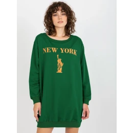 Tmavozelená a oranžová dlhá oversize mikina s nápisom .