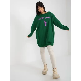 Tmavozelená a fialová dlhá mikina s nadrozmernými nápismi .