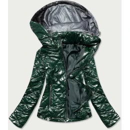Lesklá dámska bunda vo fľaškovo zelenej farbe (BR9756-10)