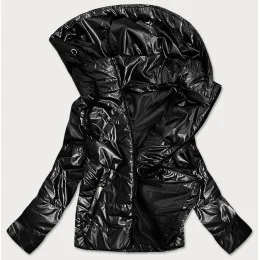 Lesklá čierna dámska bunda s kapucňou (B9575)