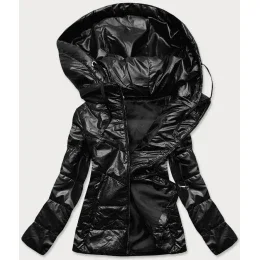 Čierna lesklá dámska bunda (B9751)