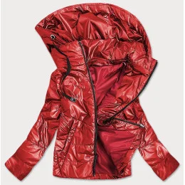 Červená lesklá dámska bunda s kapucňou (B9575)