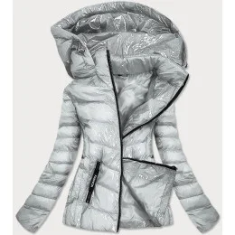 Lesklá strieborná dámska bunda s kapucňou (B9569)