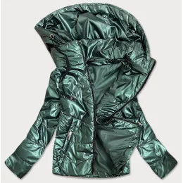 Zelená lesklá dámska bunda s kapucňou (B9575)