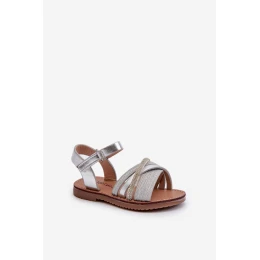 Błyszczące Dziecięce Sandałki Na Rzep Srebrne Delphina