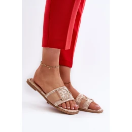 Błyszczące Klapki Damskie Z Ozdobą Beżowe Taleci