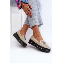Błyszczące Mokasyny Damskie Skórzane Na Platformie S.Barski LR400 Złote