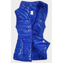 Svetlo modrá dámska lesklá vesta so stojačikom (B0107)